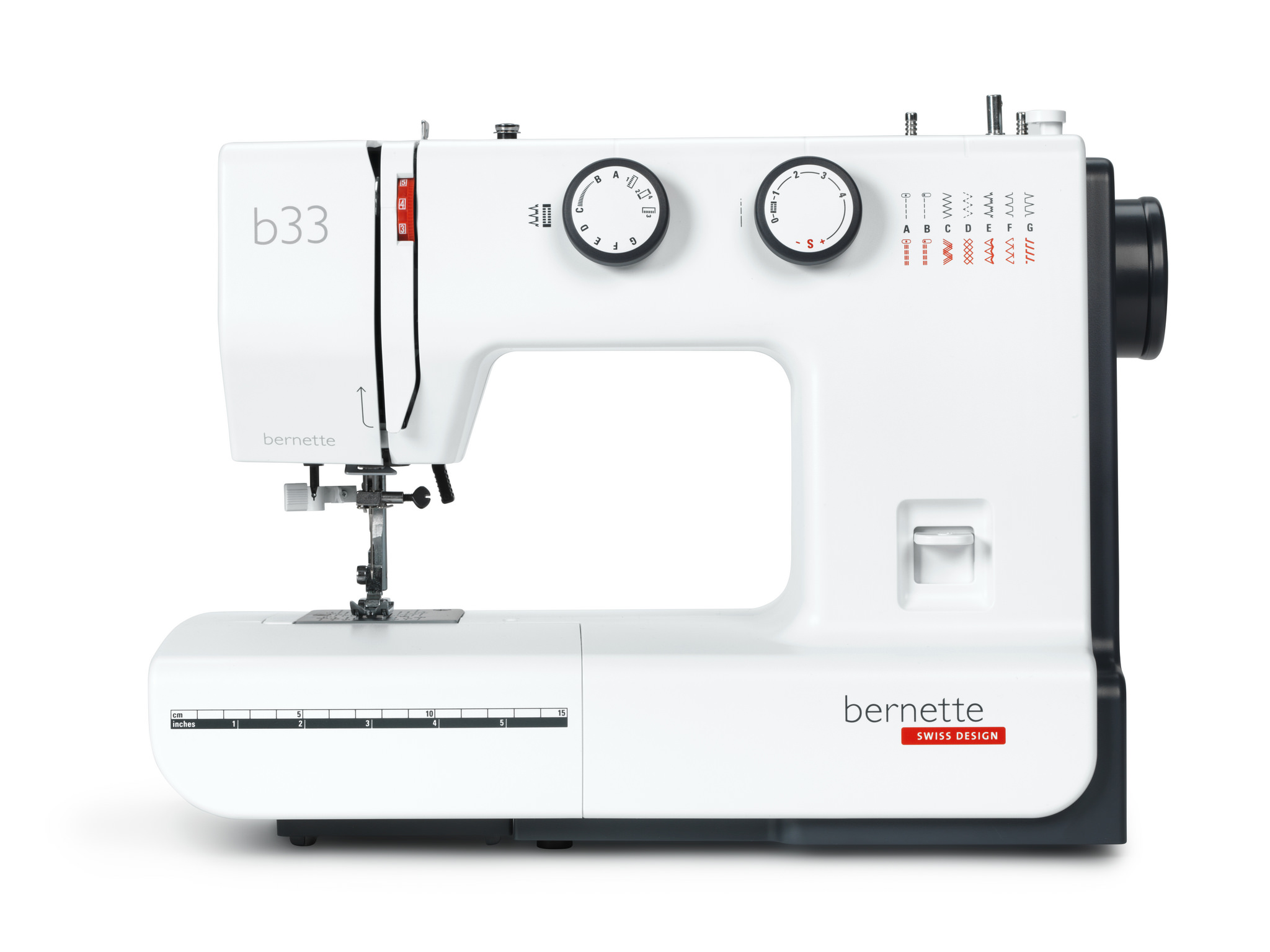 Die bernette 33 ist die kleinere Nähmaschine der beiden mechanischen bernette Modelle. Als Basismodell eignet sie sich besonders als Nähmaschine für Anfänger mit wenig Näherfahrung sehr gut. Durch ihre einfache Bedienung erleichtert sie den Einstieg ins Nähen. Sie überzeugt durch eine gute Stichqualität und verfügt über alle Funktionen, die von einer günstigen Nähmaschine erwartet werden. Stichwahl und Einstellungen können ganz einfach mit den beiden vorderen Drehknöpfen vorgenommen werden.