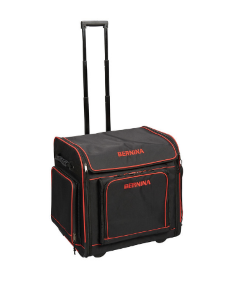 Der BERNINA Trolley Overlock ist sehr stabil und perfekt geeignet für unterwegs. Die allseitige Polsterung und das hochwertige Aussenmaterial bieten umfassenden Schutz für Ihre Overlockmaschine. Durch die grossen Öffnungen kann die Maschine einfach von der Seite oder von oben im Trolley verstaut werden. In den vielen Innen- und Aussenfächern findet sich reichlich Platz für das Zubehör. Die robusten Rollen, die seitlichen Traggriffe und der ausziehbare Teleskophandgriff sorgen zudem für eine sichere Handhabung.
