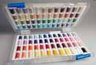 Die Organizer-Box von Mettler ist mit 96 Poly Sheen Stickfaden Spulen à 200 Meter gefüllt, inklusive Farbkarte.