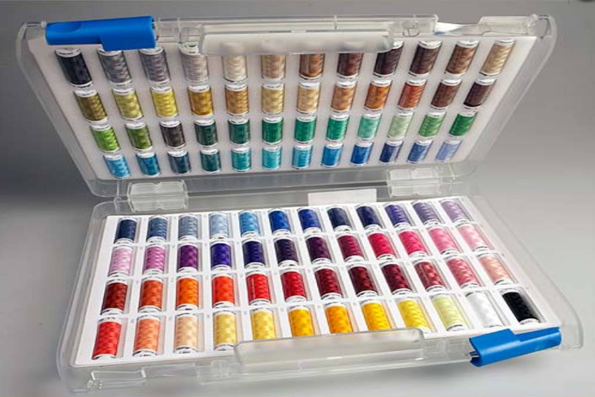 Mettler Fadenbox mit 96 Poly Sheen Stickfaden Spulen